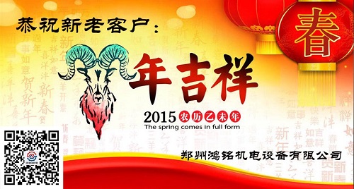農歷新年已至,鄭州鴻銘機電設備有限公司攜全體員工給 煤礦綜采設備配件客戶拜年了,恭祝羊起生活的風帆,走向羊關通途。向著羊年奔跑,達到吉羊未年,粘粘羊年的喜氣。讓美夢成真,叫理想變現,要祥瑞高照。愿客戶及其朋友們羊年喜羊羊,如日中天發羊財!